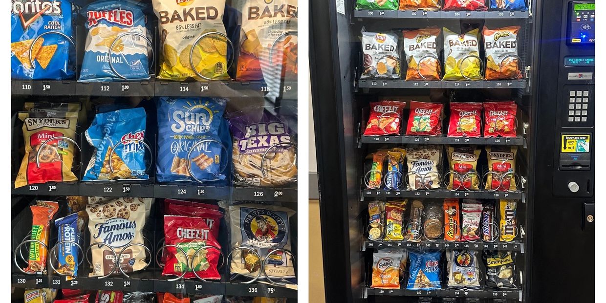 We offer a wide variety of snacks to fit all different preferences. Anything from traditional potato chips to baked chips,cookies, pastries, trail mix or beef jerky. Instead of simply offering a generic list of products in our machines we focus on the needs of every individual location. Which means we will continuously adjust our offerings based on preferences and location suggestions.